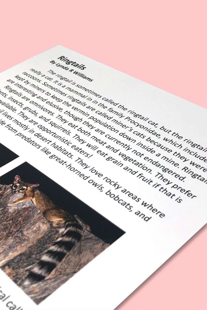 Reading comprehension unit on ringtails