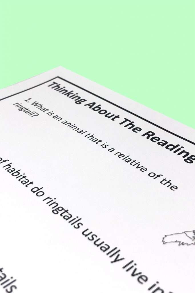 This Ringtail Reading Comprehension Unit Includes: