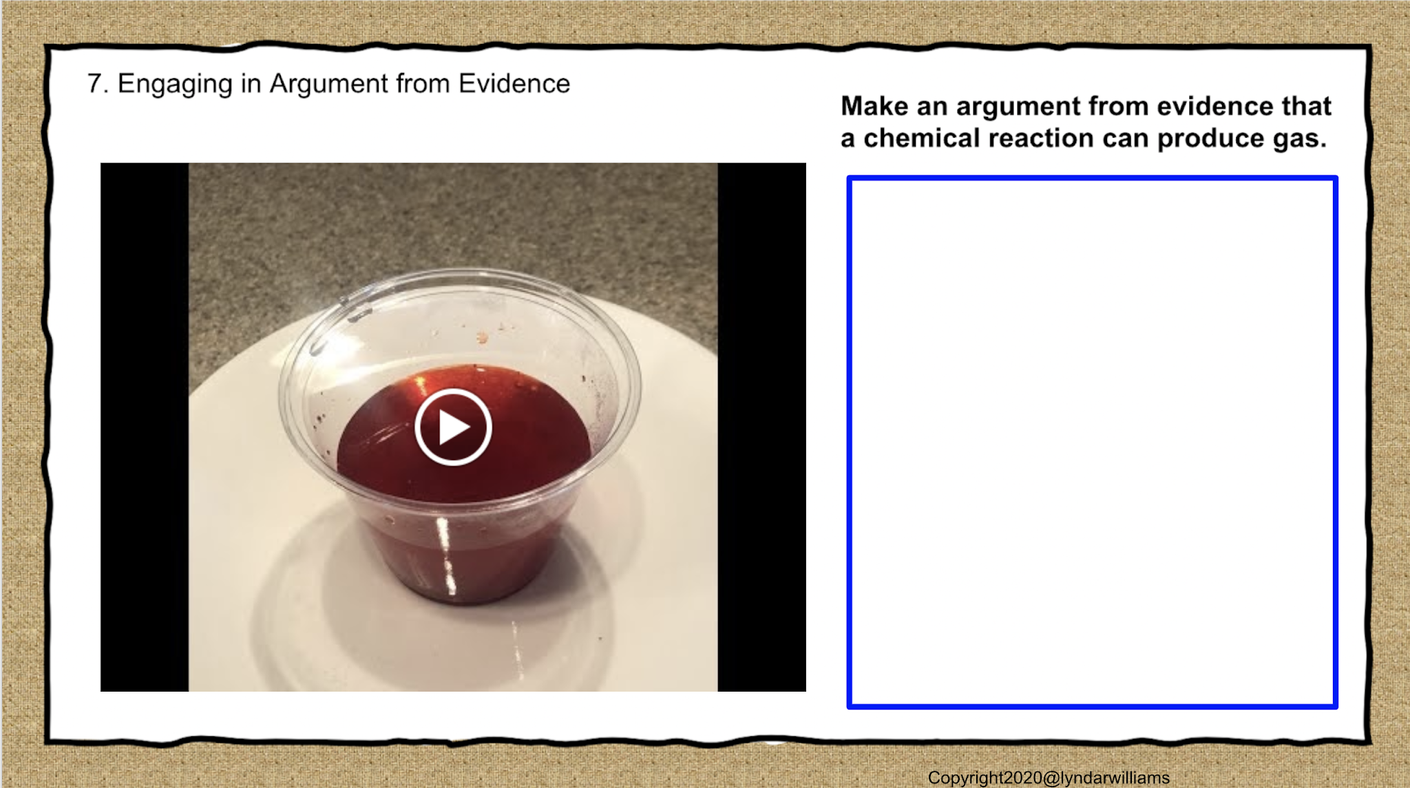 7. Engaging in argument from evidence: Students support their best explanations with lines of reasoning using evidence to defend their claims.