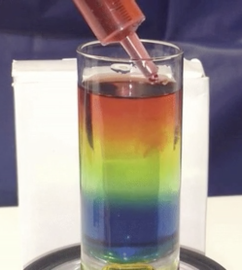 This experiment takes advantage of density to create a rainbow in a glass. When you add sugar to a liquid, it causes the solution to become denser