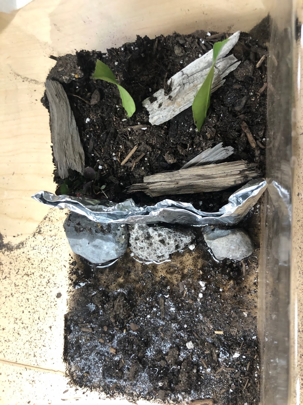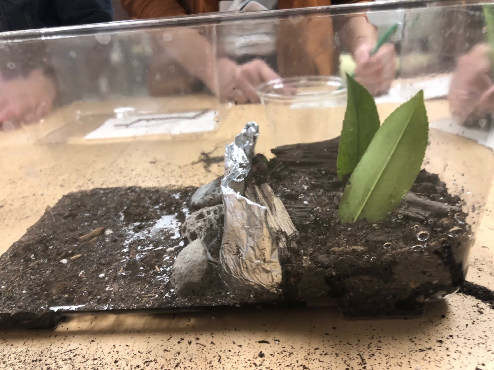 Students made retaining walls and planted vegetation to hold soil in place. Then they tested it.