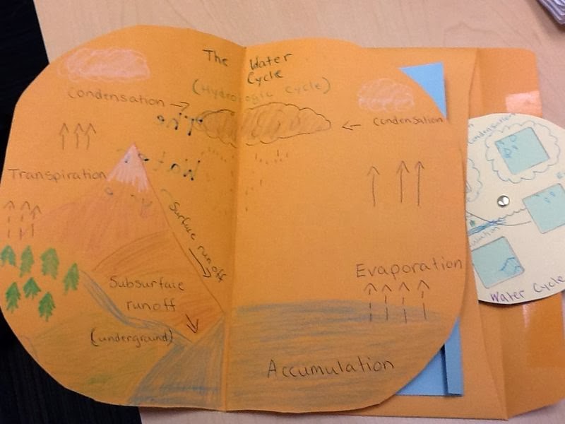The end product also has a pocket for holding other pieces of information. Here a water cycle wheel is placed. Template for the water cycle wheel is available on an earlier blogpost. Water Cycle Blog EntryFor step by step directions go to