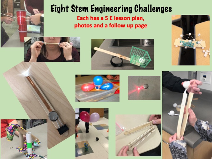 For STEM Activities I provide students with a variety of household materials, such as rubber bands, masking tape, toilet paper tubes, balloons, paper cups, plastic basics (like strawberries come in) paint stir sticks, tongue depressor sticks, empty wooden spools, plastic spoons, duct tape, pin pong balls, and tape measure. (note to teachers: you can buy ping pong balls for a lot cheaper if you search for beer pong balls. These balls will work just as well, they are not regulation ping pong balls. Try to get them without a beer label. Jalternatively, you can use large marshmallows)
