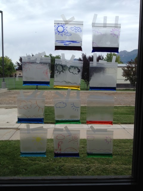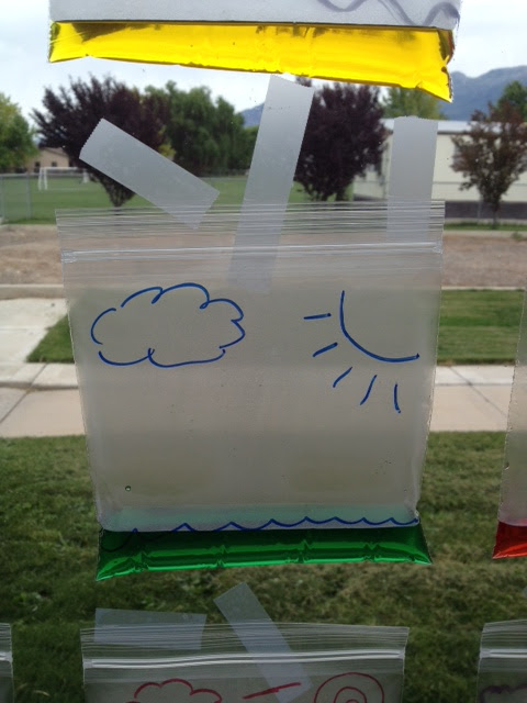 This one looks like a baggie and the students label the parts of the water cycle that they saw.