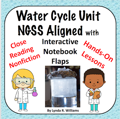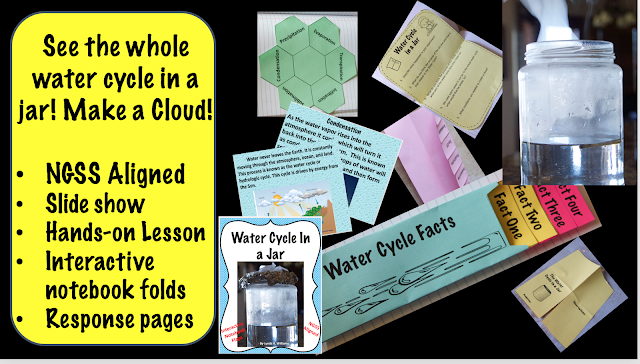 I then ask students a bunch of questions about the water cycle. What parts did they see? What was the match for? Students record their observations.Next, I provide them with some nonfiction text to read which will help them connect to more of the concepts. We have another discussion and students fill out their response questions for the interactive notebook. This lesson along with the nonfiction article, interactive notebook flaps, and folds and response pages is available in my store. Water Cycle In a Jar Or in the complete unitComplete Water Cycle Unit
