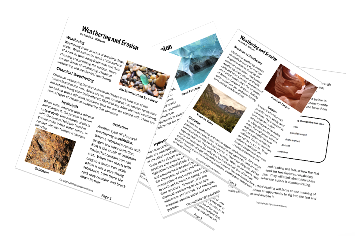 I have students read nonfiction text to further their understanding of chemical and physical erosion. This allows me to integrate reading informational text standards with the science curriculum. I do this in a CLOSE reading format.