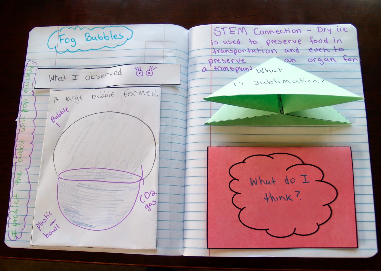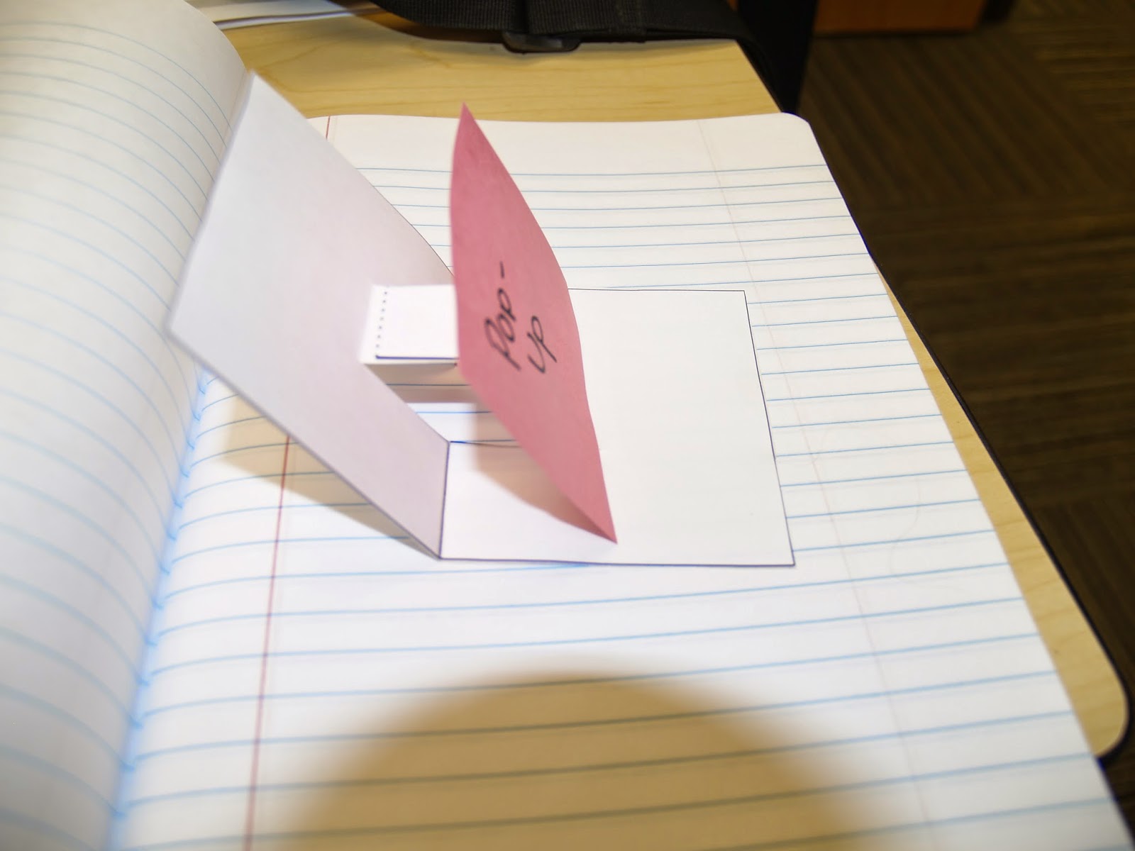 Have students glue whatever they want to pop up onto the flat part of the tab. (This is important. I often see students trying to glue something to the crease and this will not work)