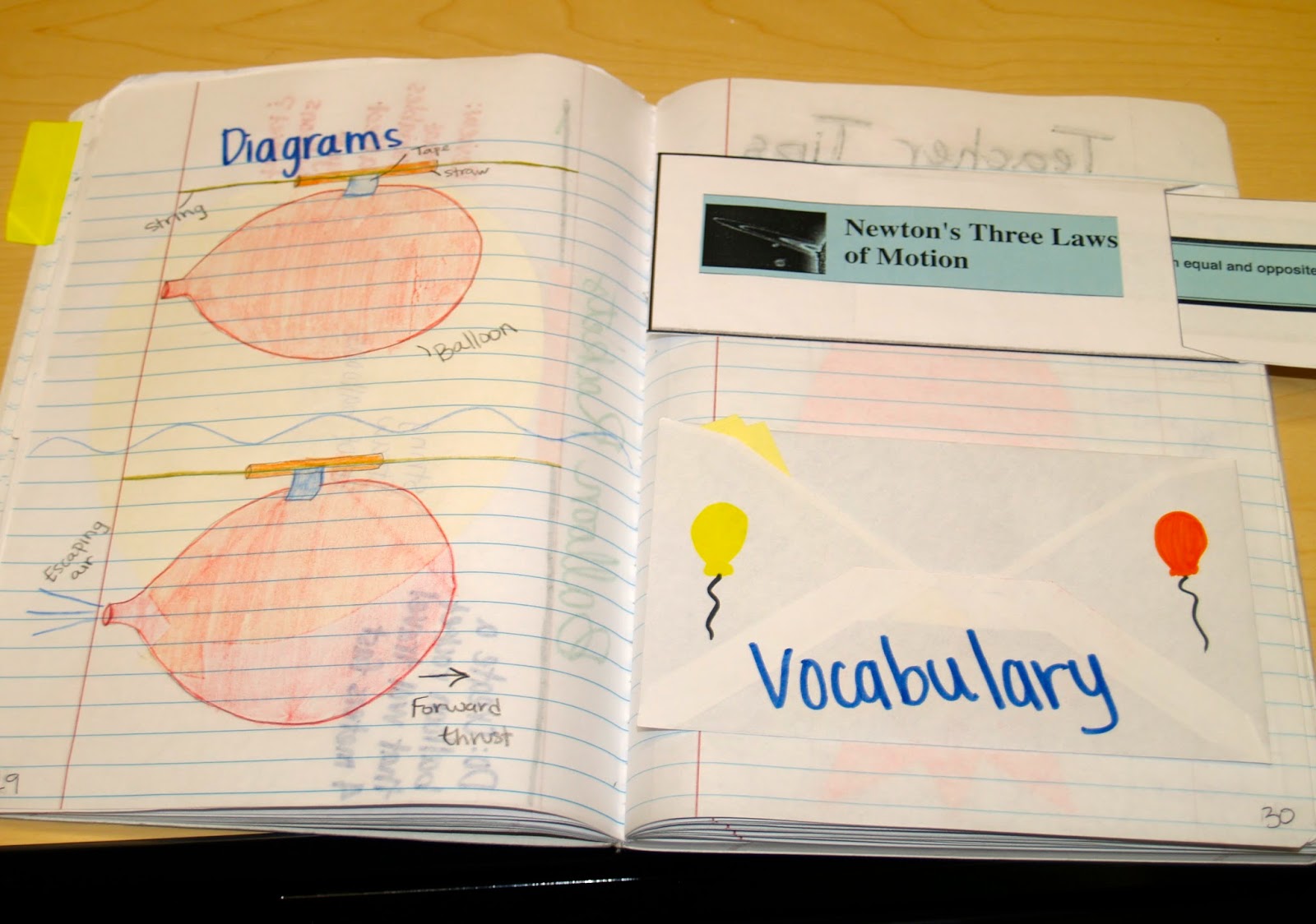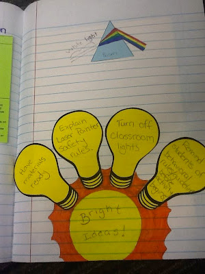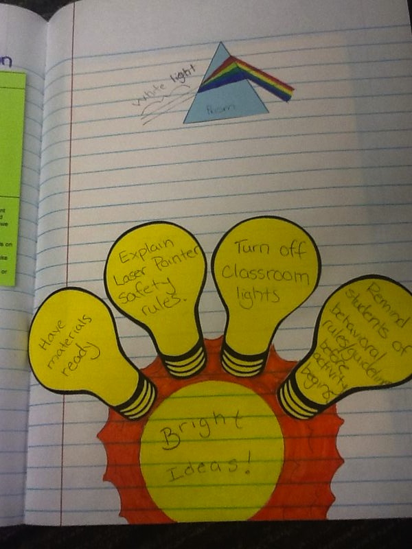 I set up my teacher’s notebook ahead of time. If I have folds or cuts to make, I usually do that ahead of time too, even if I will model the making of the fold again with the class. This way I can put my teacher’s notebook under the doc camera so that students can see what it is suppose to look like. I often cover some of my information up with post-it notes or index cards so that the students cannot just copy my notebook.