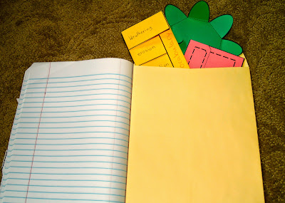 I also suggest gluing an envelope to the back cover. Students can place lose items they are working on in the envelope for safe keeping.