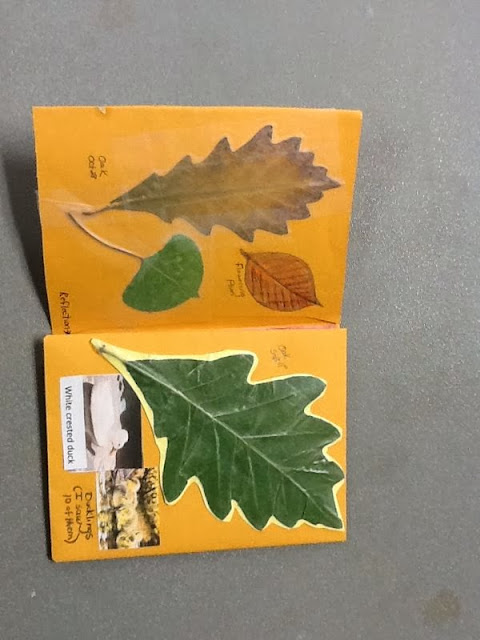 Teacher Tip: Clear packing tape seems to work well for preserving small specimens, such as leaves. Seal them completely to the paper so that they are not exposed to air. See example below.